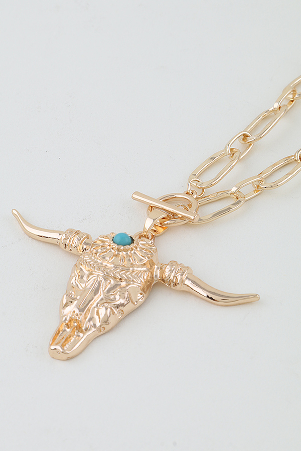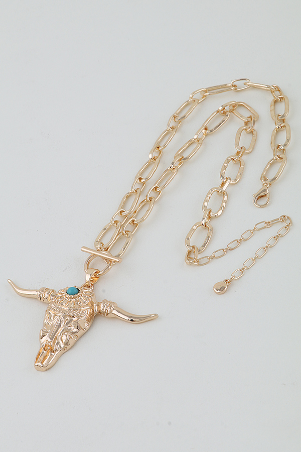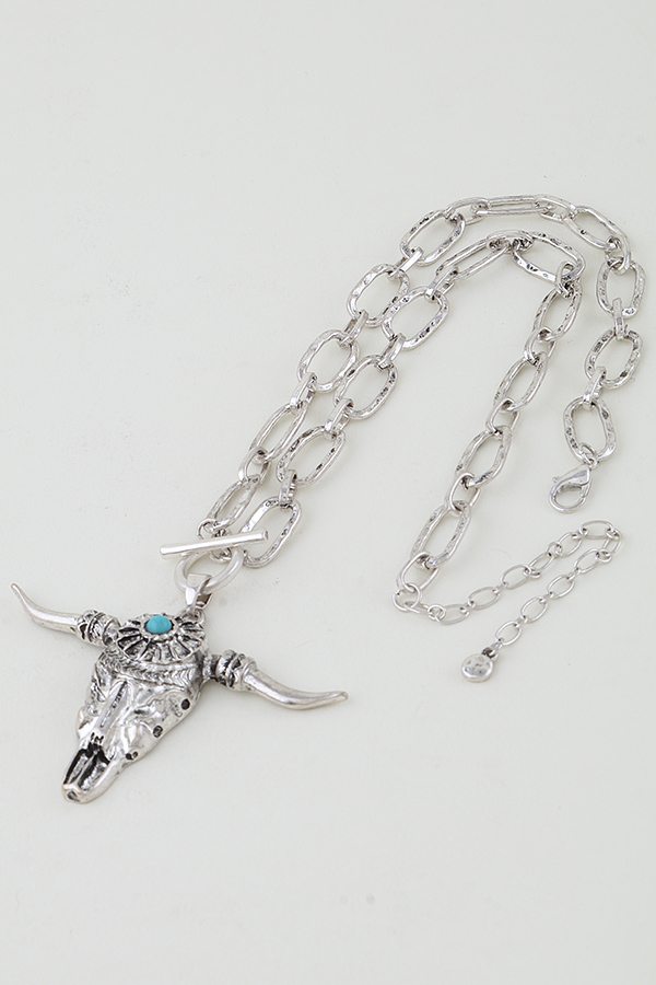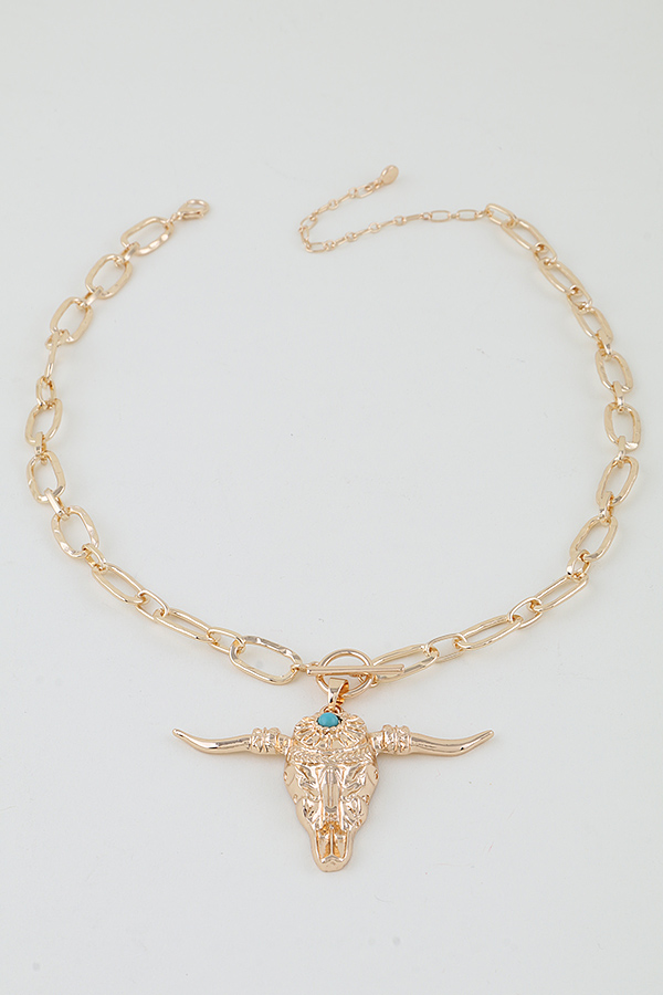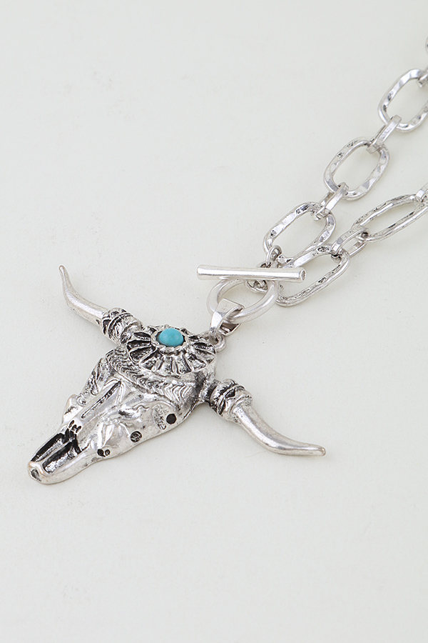• * This Antique Bull Toggle Link Chain Necklace from H&D Accessories features a chunky link chain with a detailed bull skull pendant. The pendant showcases intricate textures, capturing the bull’s features, and is paired with a toggle closure. Meticulous craftsmanship ensures secure attachment, creating a piece that blends rustic charm with bold detailing, making it a standout accessory.