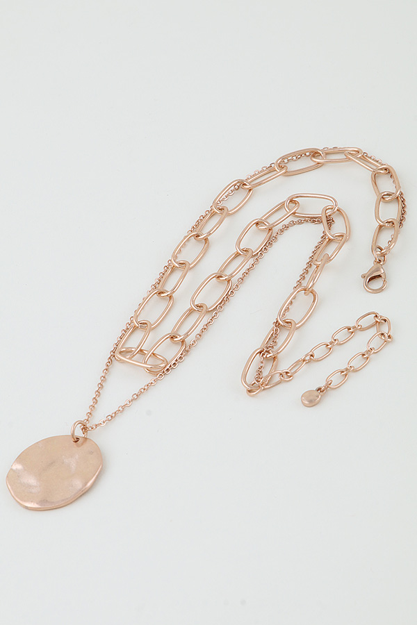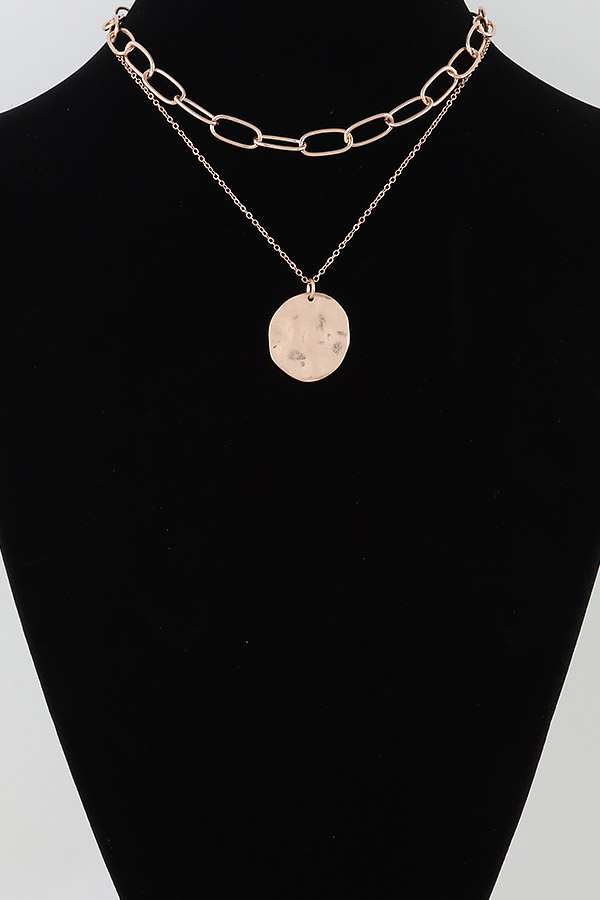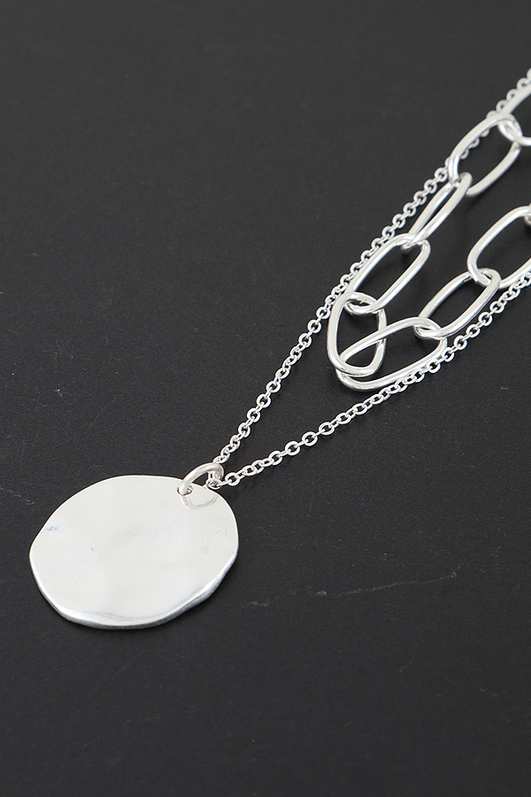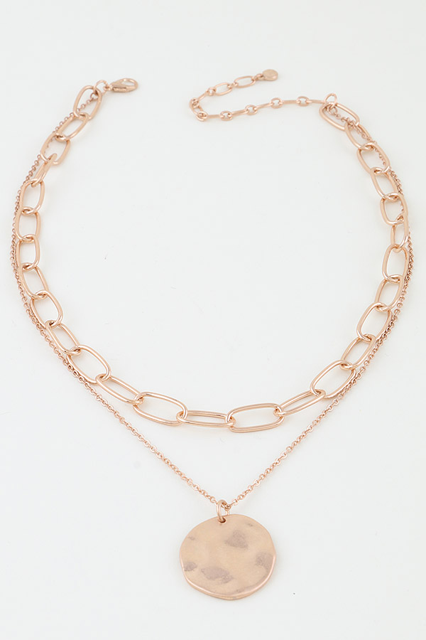 • * This is a Double Hammered Pendant Chain Necklace. It has a double - layer design, with one layer being a chain and the other featuring a hammered pendant. The combination creates a stylish and layered look, suitable for adding a touch of elegance to your outfit. From H&D Accessories.