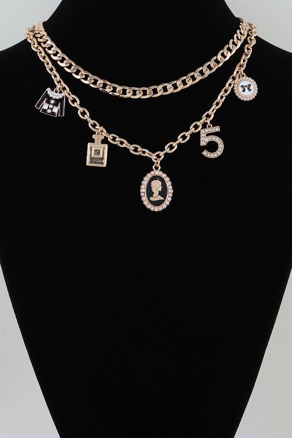 • * This is the Double Luxury Woman Charms Chain Necklace from H&D Accessories. It features a double - layered chain design adorned with various charming pendants that add a touch of elegance and personality. The necklace is perfect for elevating your style on special occasions. Whether you're attending a glamorous party, going on a dinner date, or simply want to add a luxurious flair to your everyday outfit, this necklace will surely catch people's attention and complement your look beautifully, making you stand out with its exquisite and stylish appearance.