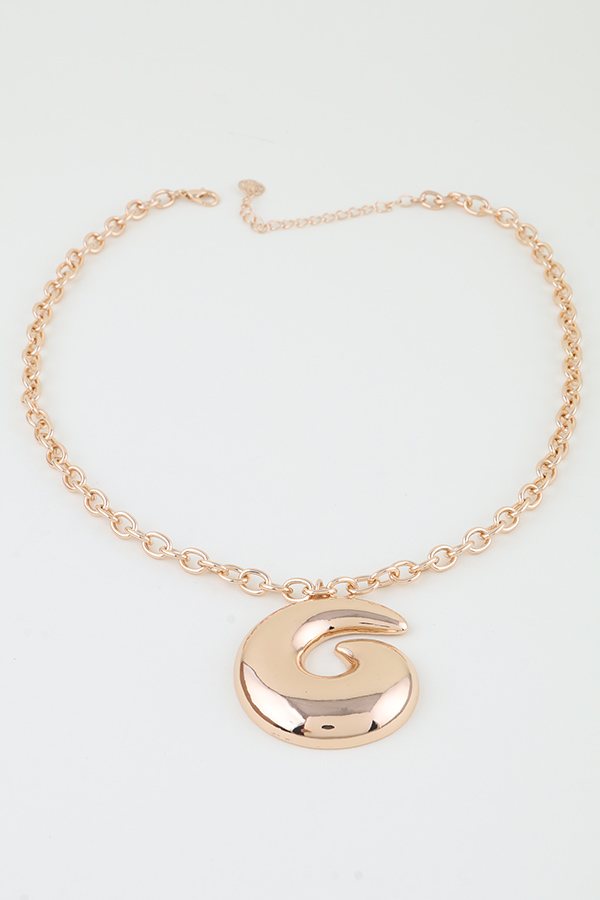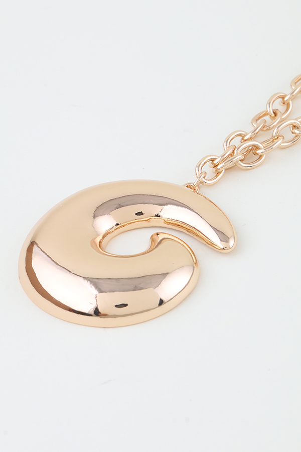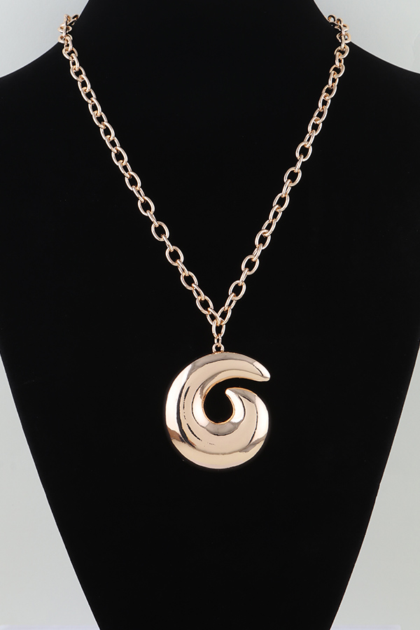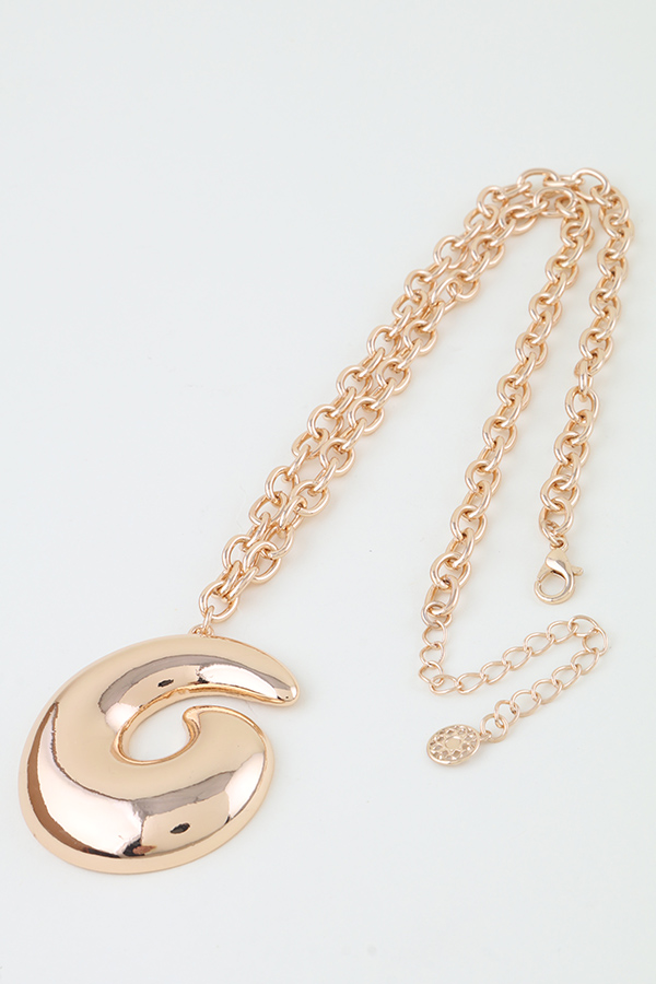 • * Polished Swirl Chain Necklace from H&D Accessories features a delicate, polished metal chain, from which a large, sculpted swirl pendant hangs at its center. The pendant boasts a smooth, reflective surface with a continuous, fluid spiral design, creating a modern, eye-catching focal point. Expertly crafted with a sleek, shiny finish, this necklace blends minimalist chain styling with bold, artistic curves, making it a versatile and sophisticated addition to any jewelry collection.
