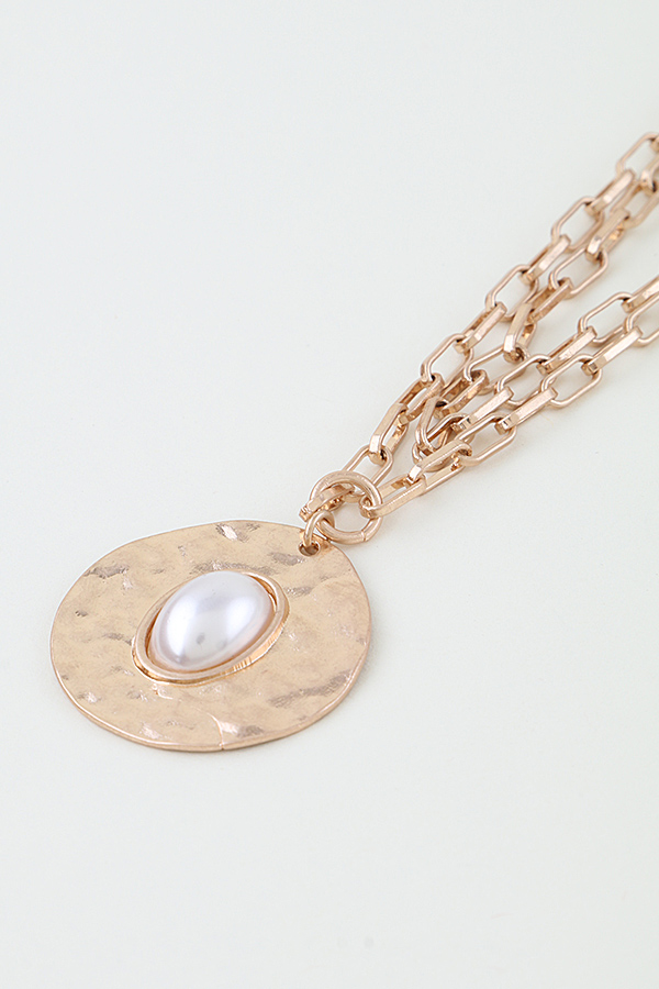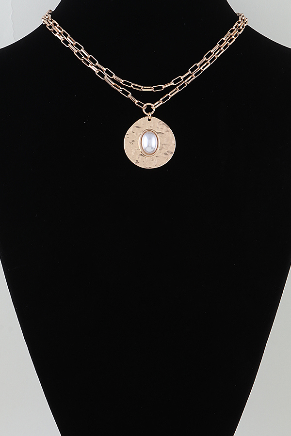 - * This Hammered Eye in the Storm Necklace from H&D Accessories features a layered double-chain design, with a textured, rounded disc pendant that centers a smooth, polished detail for subtle contrast. The adjustable chain offers a customized fit, making it a versatile accessory—ideal for elevating a simple turtleneck during a weekday office look, or adding a refined touch to a sleeveless top for a dinner gathering, blending understated texture with effortless, elegant style.