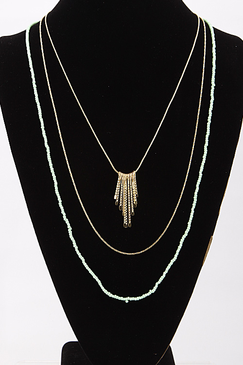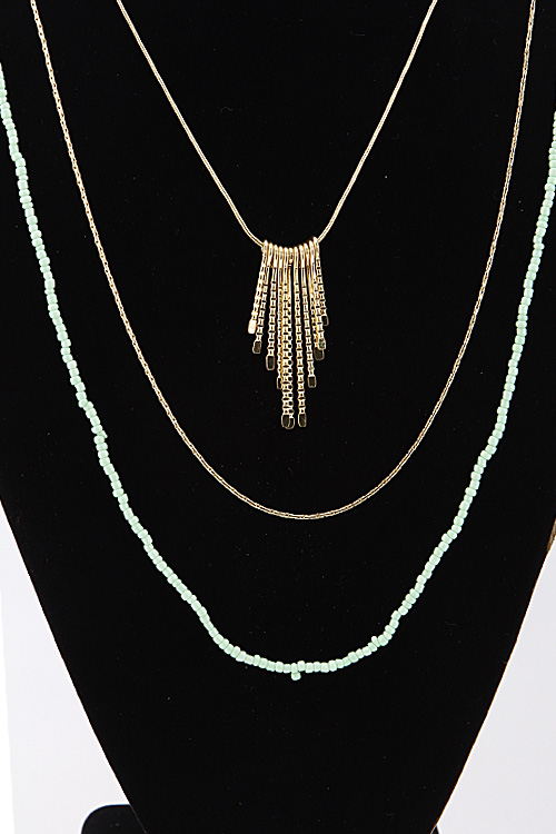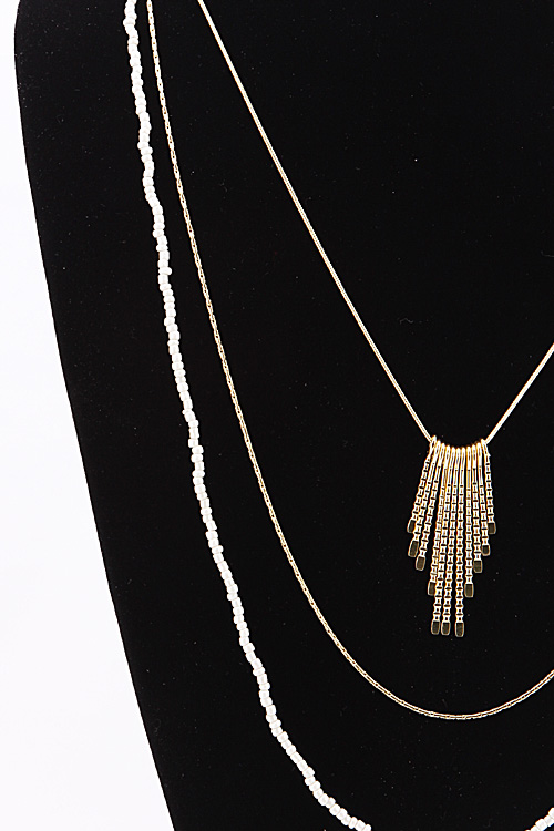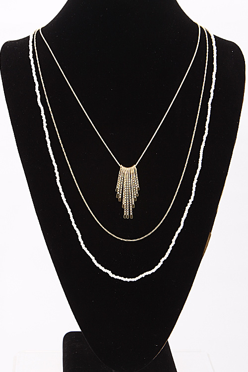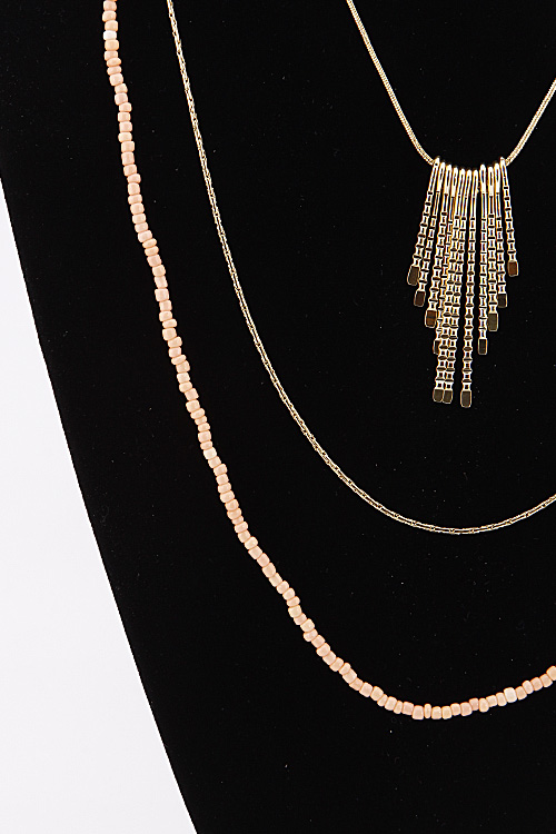 • *Simple Triple Layered Long Necklace With Fringes And Beads 6BAJ1 *28" approx.