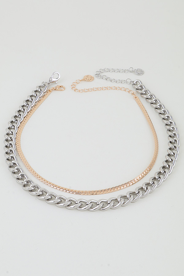 - * Double Two Toned Chain Choker Necklace