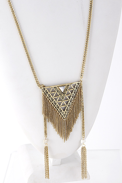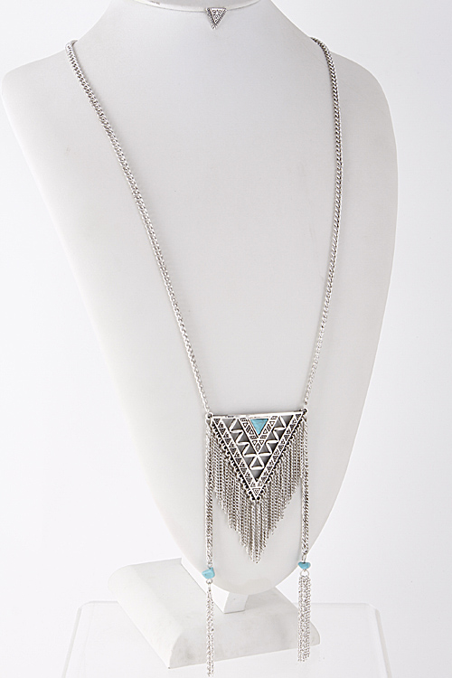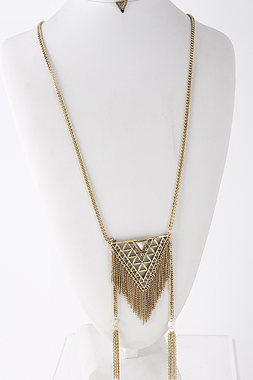 • * Triangular Cutout Chain Hanging Long Necklace 5FAC1 * 28 x 4" approx.