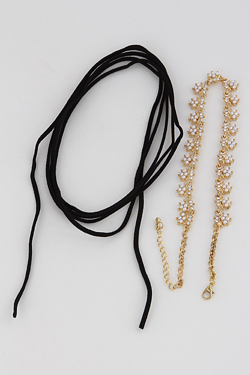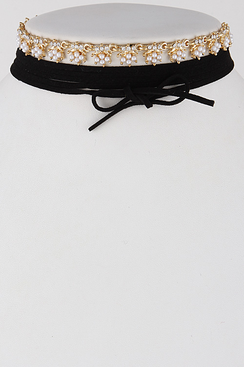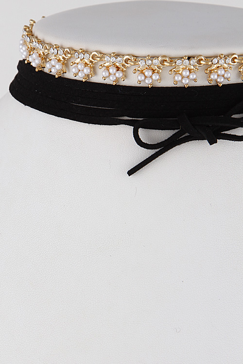 - * Fashion Choker Necklace With Pearls Details 6KAC3 * 0.4 X 12" approx. * 72" approx.