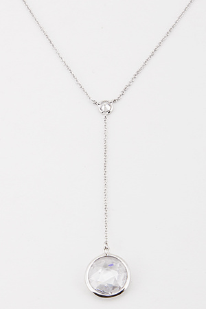Long Faux Stone Pendant Necklace with Tassel Chain Detail 6BAG9