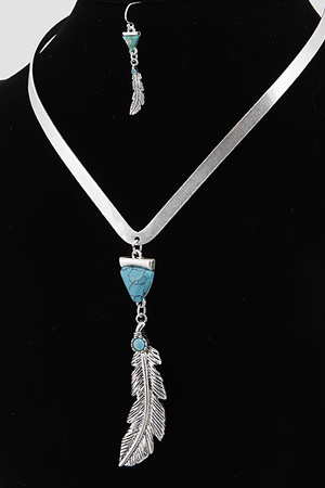 Aztec Feather Stone Choker Necklace Set 5LAF2
