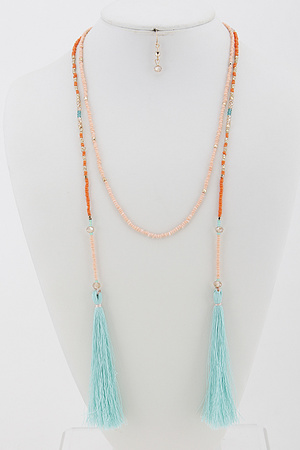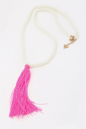 Small Colored Stones with Neon Tassel Detail Long Necklace 5LCC5