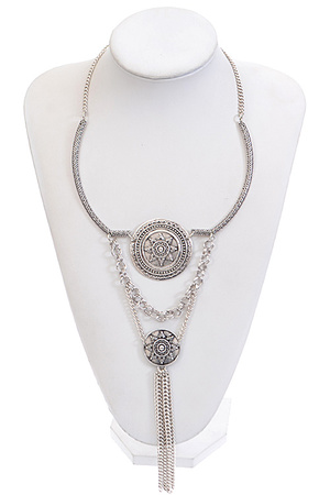 Mixed Color Charm Dangle Statement Necklace 5EBJ7