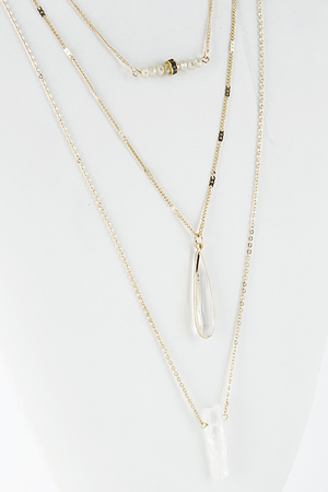 Stone Detail Bead Strap Layered Necklace 5DCD6