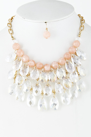 Pastel Tone Clear Droplet Beaded Statement Necklace 5DDA5