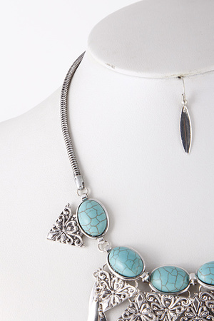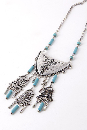 Turquoise Stone Bead Plate Charm Dangle Necklace 5EBF5