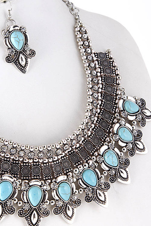 Rhinestone Bead Linked Teardrop Stone Detailed Necklace 5EBF