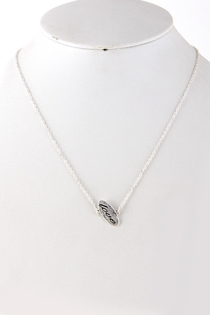 Love Cursive Writing Oval Pendant Necklace 5DBH5