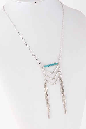 Patterned Triangle Pendant Layered Chain Tassel Necklace 5DBA5
