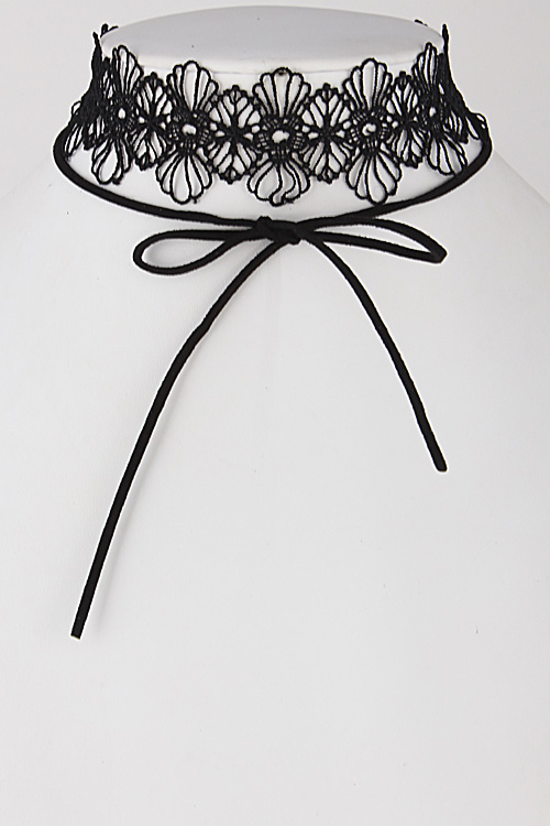 - * Lacy Flower Thick Choker With String Attachment
