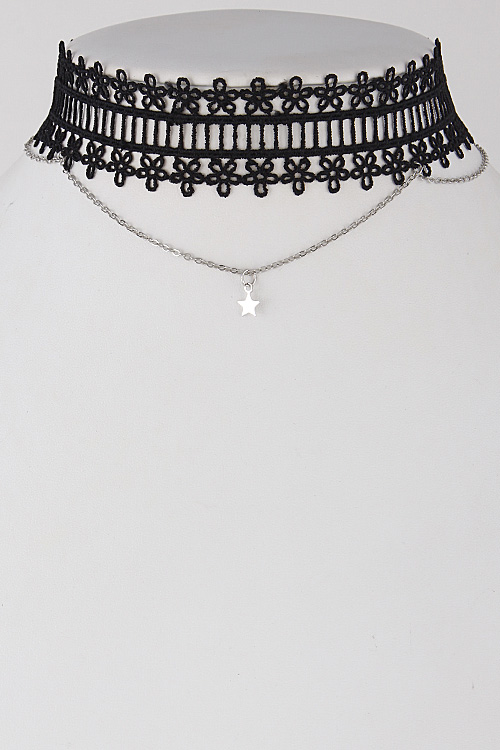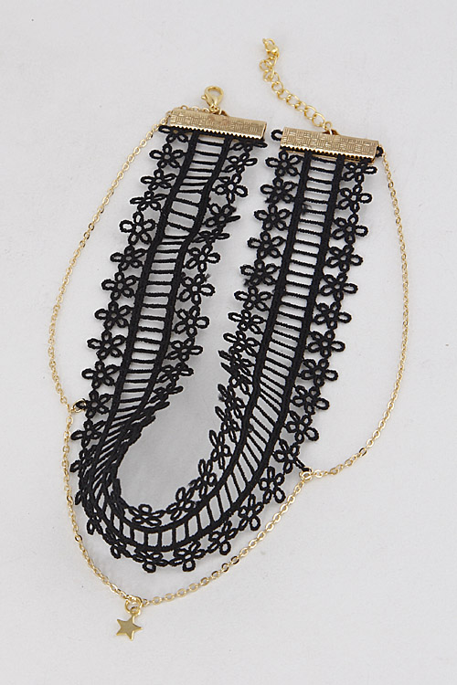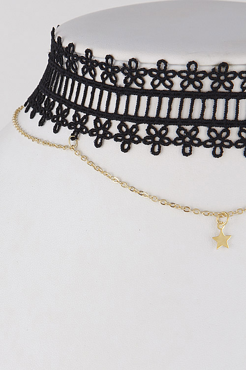 • * Thick Floral Inspired Star Choker Necklace 6ICC7 * 1 X 12" approx.