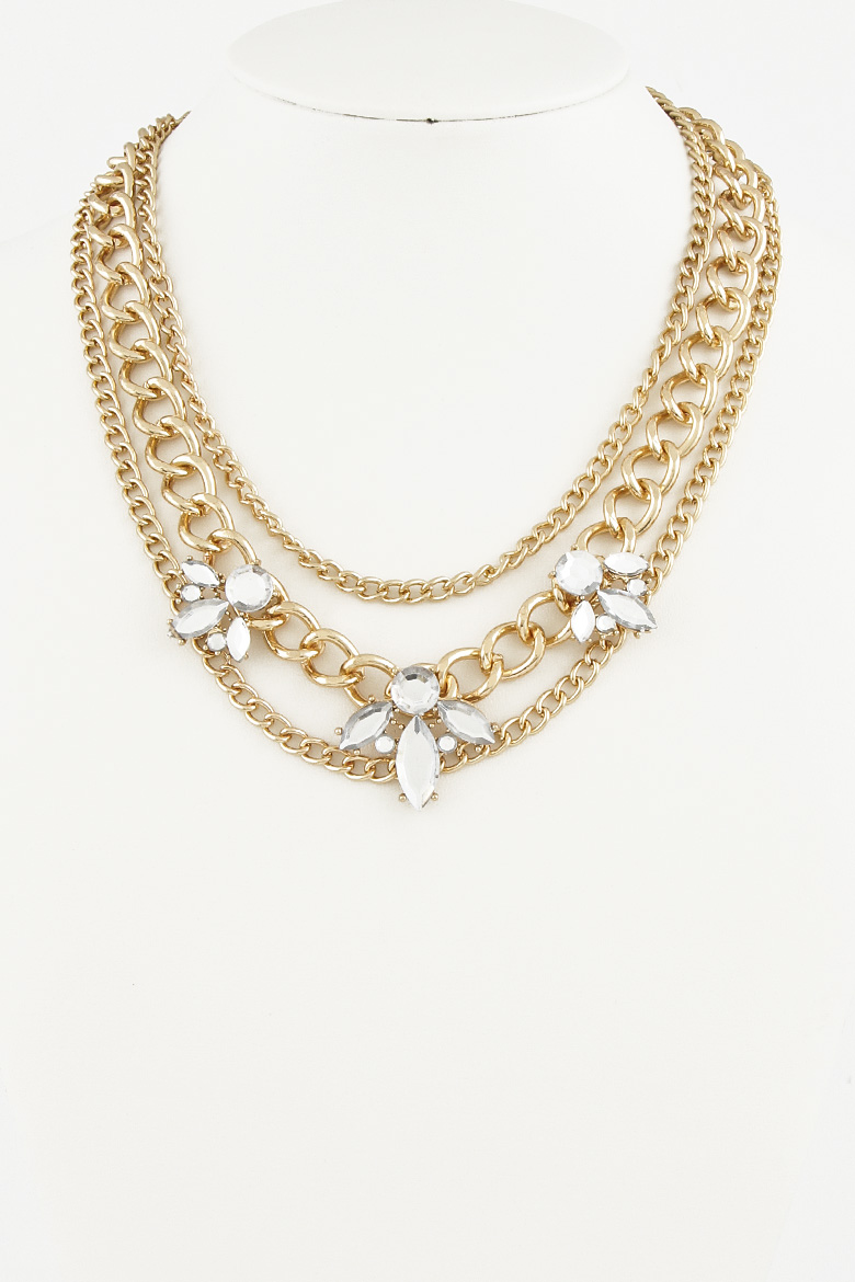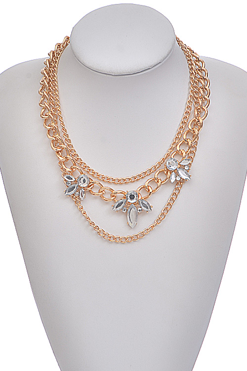 - * Chained Floral Rhinestone Necklace