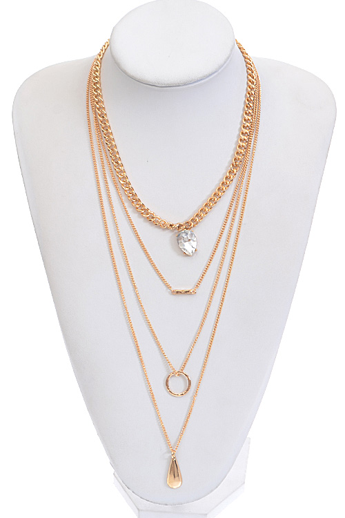 • * Four Pendant Chain Long Necklace * 20" approx.