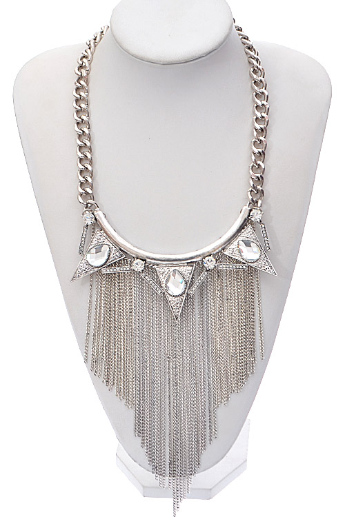- * Spiky Jewel Statement Chain Drop Necklace * 21" approx.