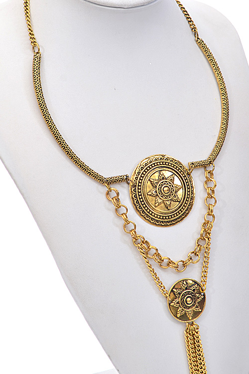 - * Sun Dial Unique Statement Chain Drop Necklace * 22" approx.