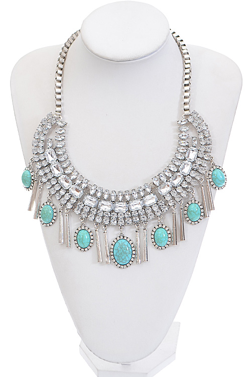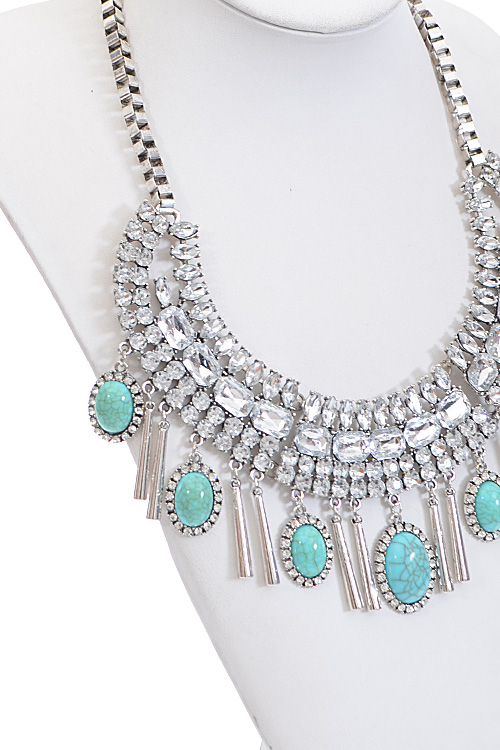 - * Multi Rhinestone Turquoise Statement Nekclace * 19” approx.