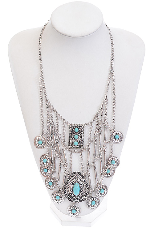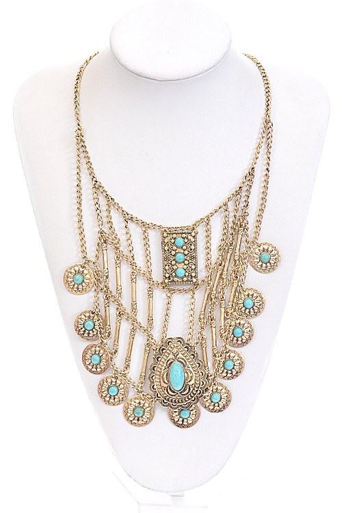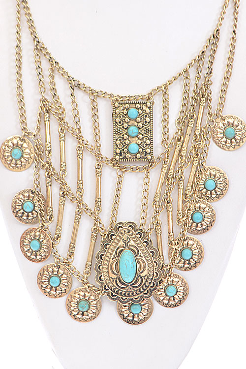 • *Long Egyptian Inspired Turquoise Necklace * 22*6.5" approx.