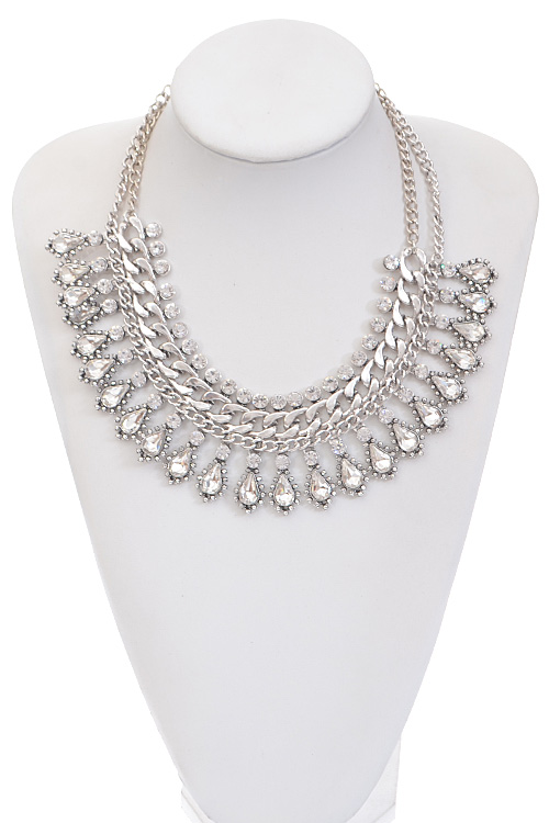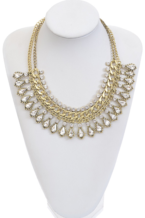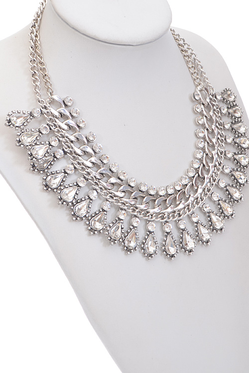 • * Double Chain Rhinestone Attached Statement Necklace * 20 x 2" approx.