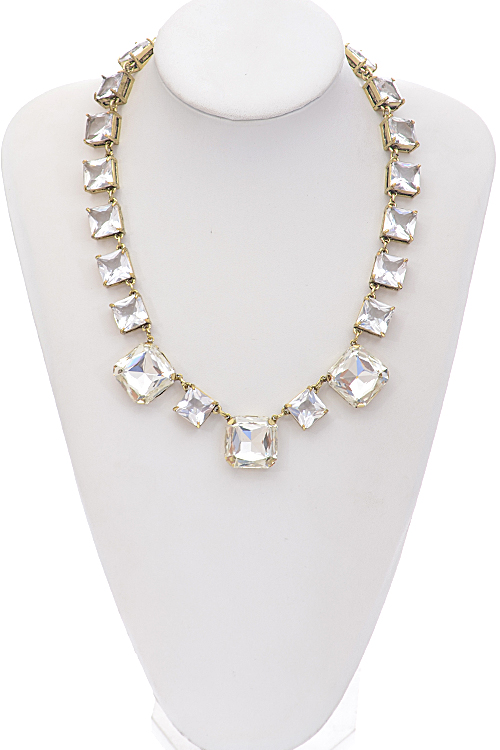 • * Different Size Square Jewel Linked Necklace * 21 x 0.75" approx.