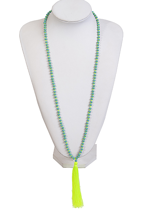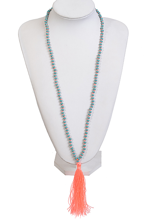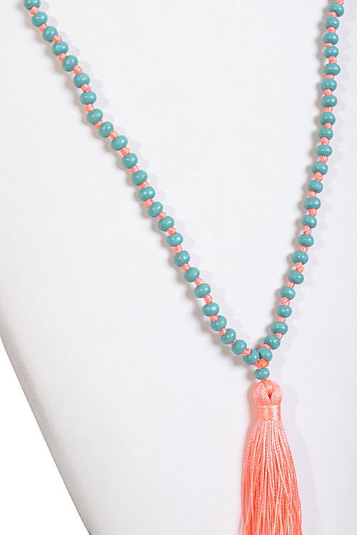 - * Double Colored Beaded Necklace With Tassel Attachment * 31 x 4.25" approx.