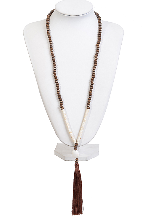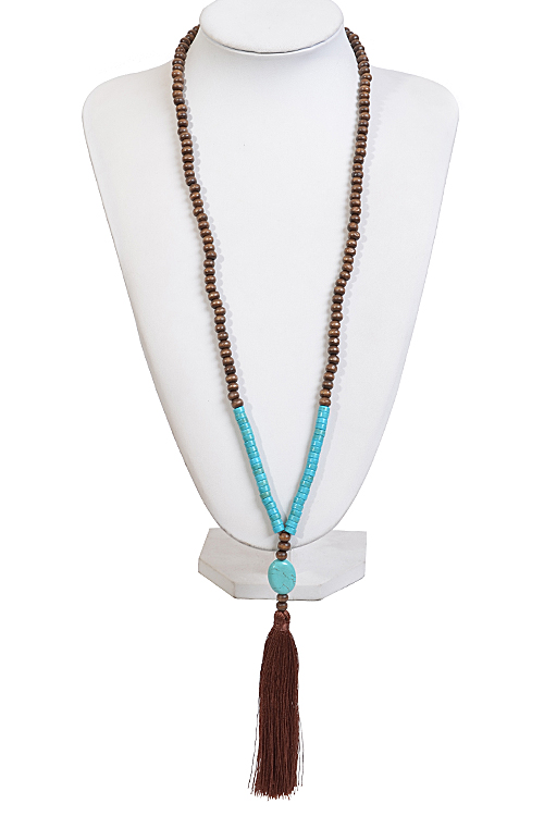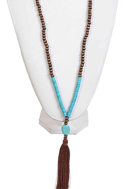• * Long Thin Beaded Necklace With Stone And Tassel * 31 x 5.5" approx.
