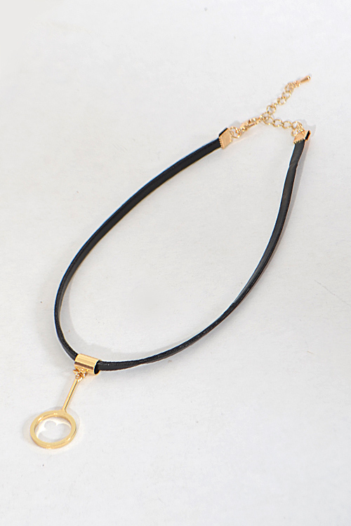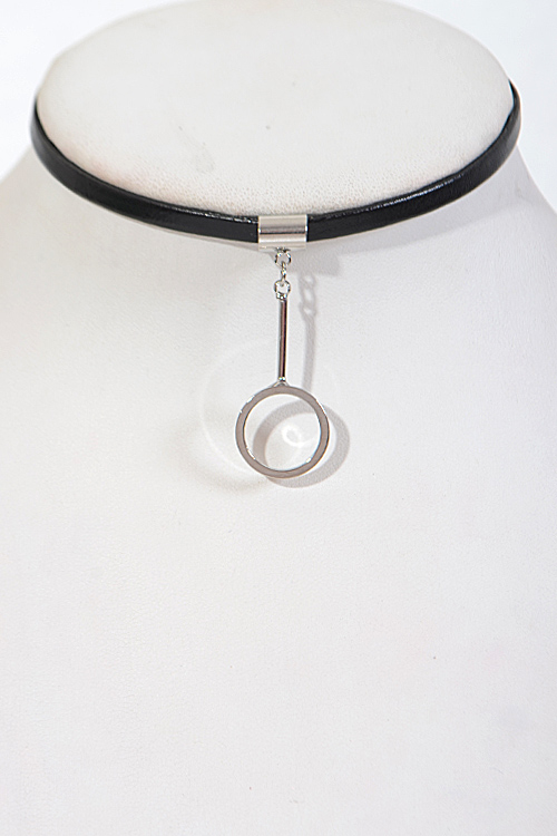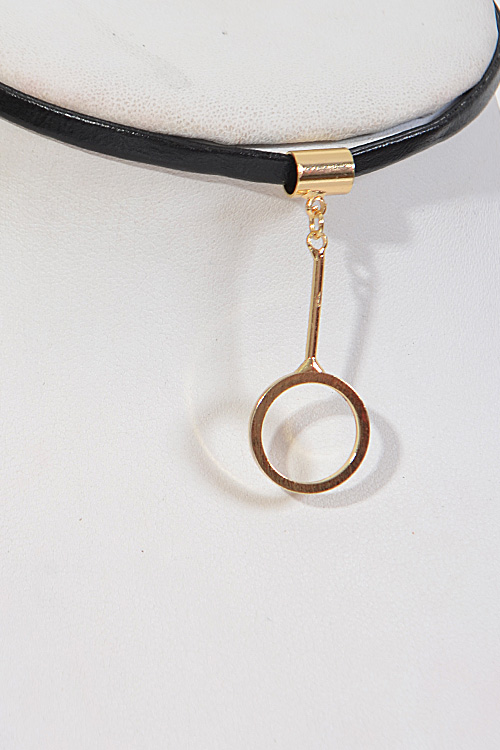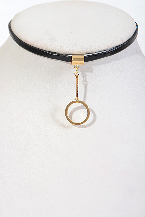 - * Thin Choker Necklace With Circle And Bar * 14.5 x 0.2" approx.