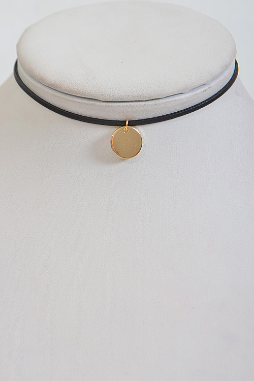 • * Thin Simple Choker Necklace With Pendant * 15" approx.