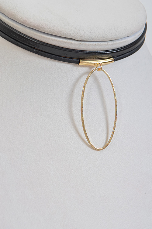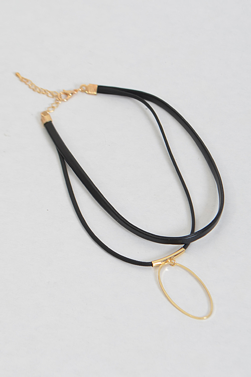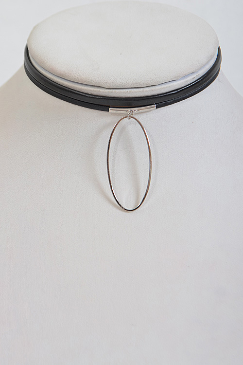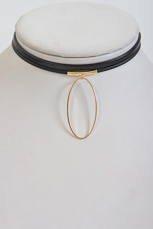 - * Thin Choker Necklace With Circle Emblem * 15" approx.