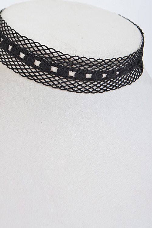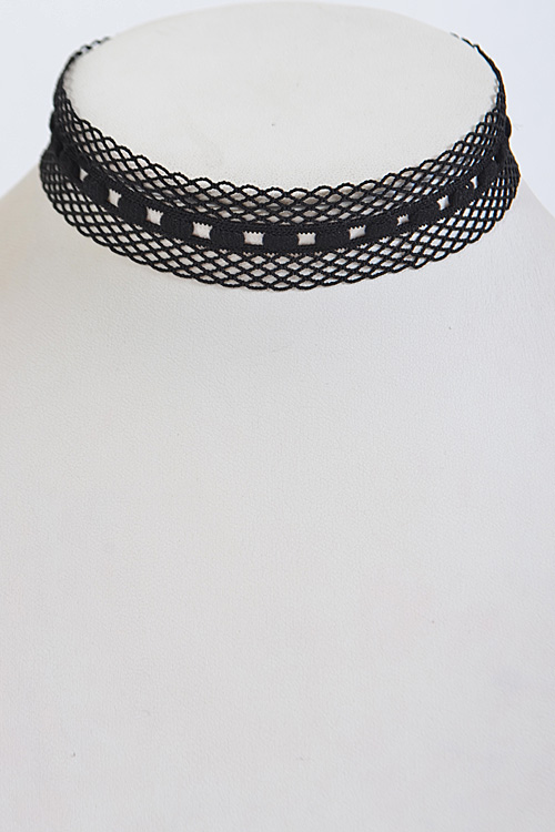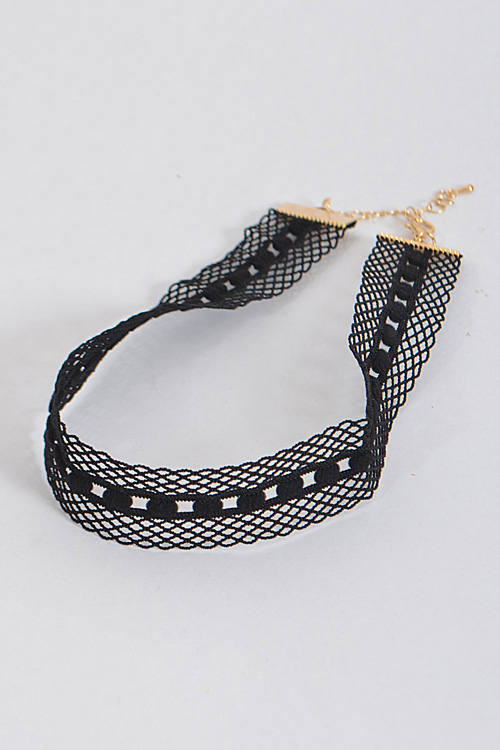 - * Lacy Choker Necklace With Square Stud * 14.75 x 0.9" approx.
