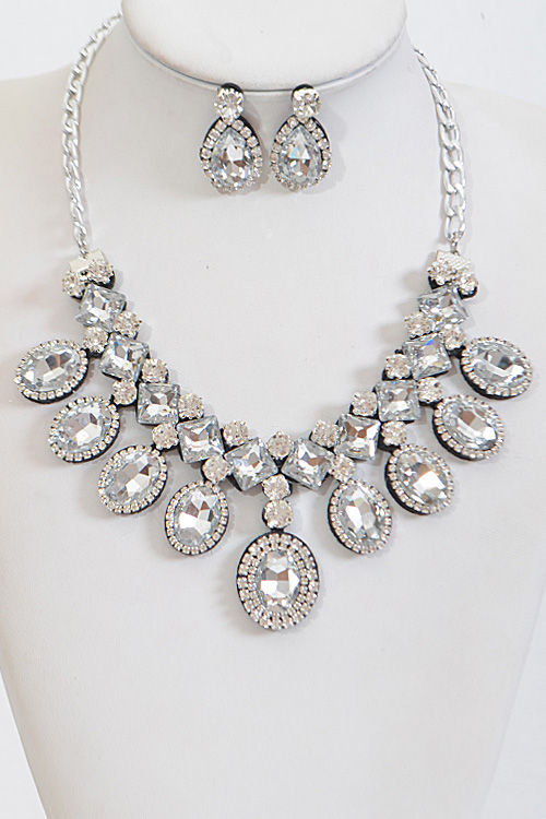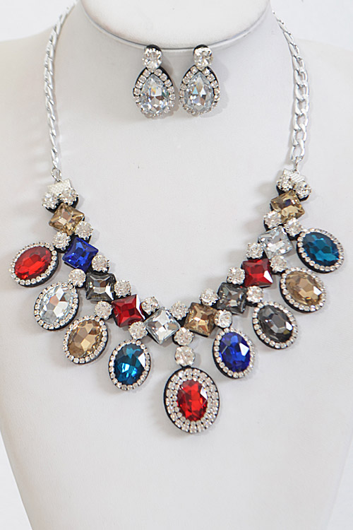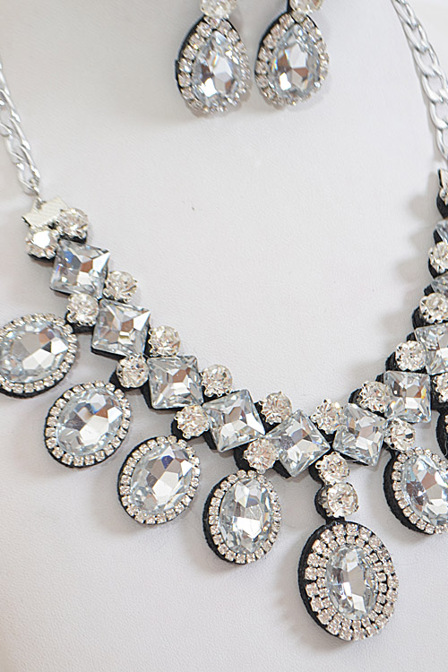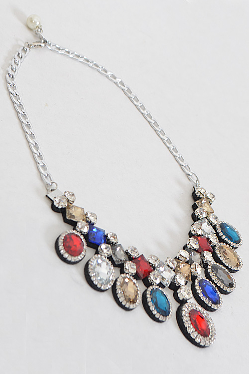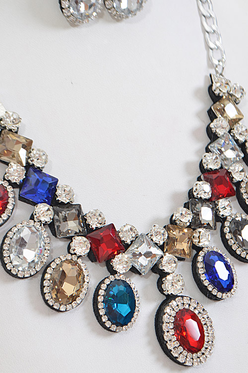 - * Shiny Multi Shape Rhinestone Necklace Set * 18.5 x 2.25" approx.