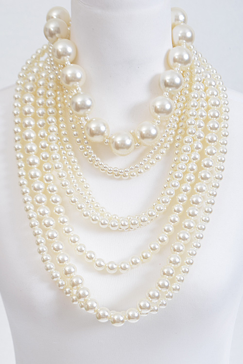 • * Faux Pearl Multi Layer Drop Necklace * 20" approx.