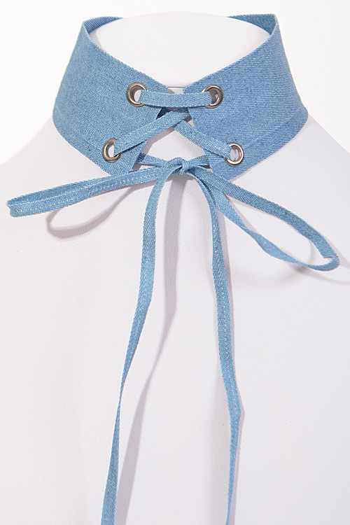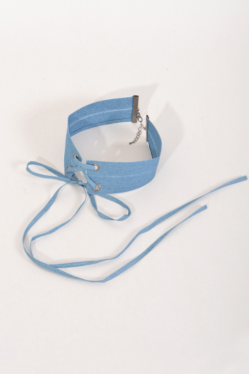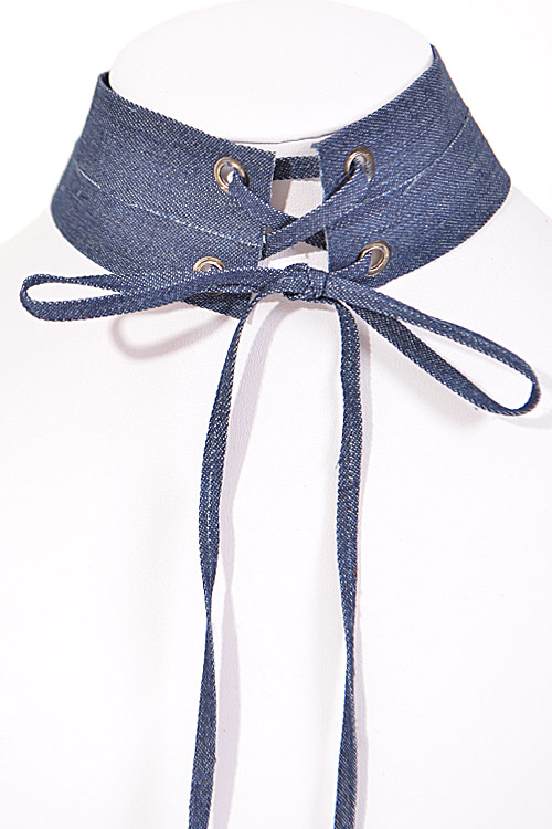 • * Corset Inspired Denim Choker Necklace * 14.5 x 1.5" approx.