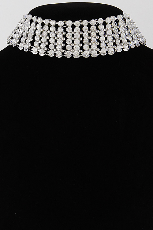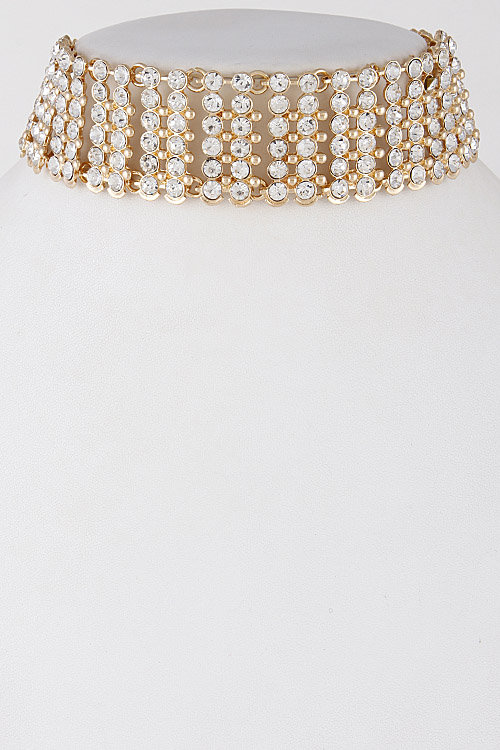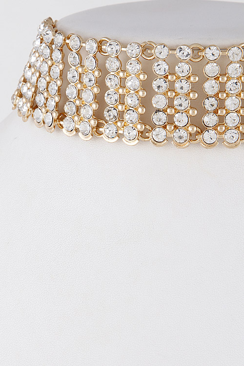 - * Thick Rhinestone Choker Necklace 6KCD9 * 1.5 x 12" approx.