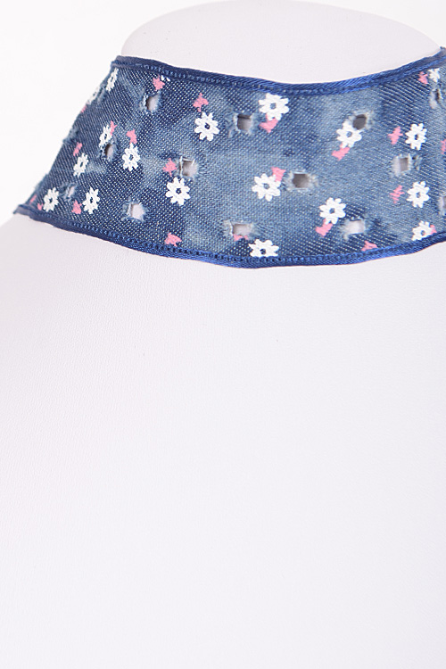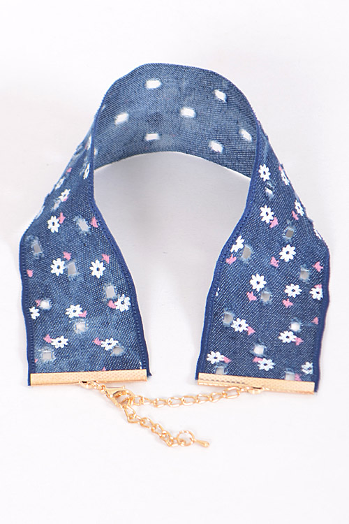 - * Jean Thick Choker Necklace With Lovely Flower Details * 16 x 1.6" approx.