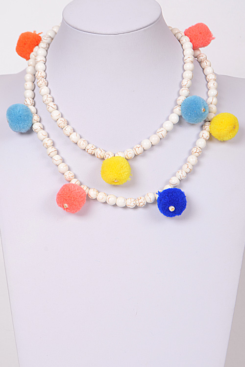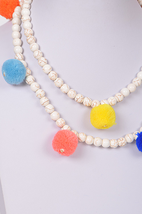 - * PomPom Wrap Necklace * 36" approx.