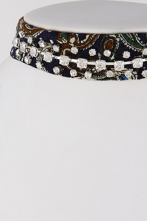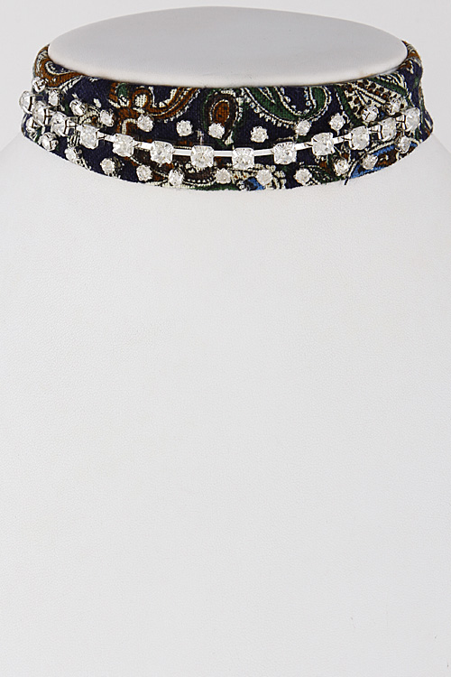 • * Bandana Inspired Rhinestone Choker Necklace 6KAC1 * 1 x 14" approx.