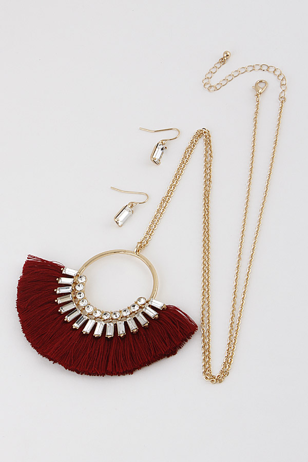 - * Aztec Inspired Mini Rhinestone Tassel Necklace 9IBC5