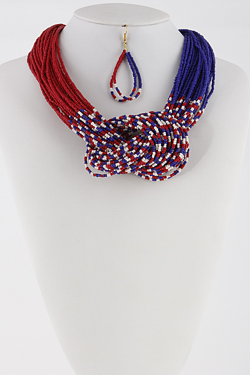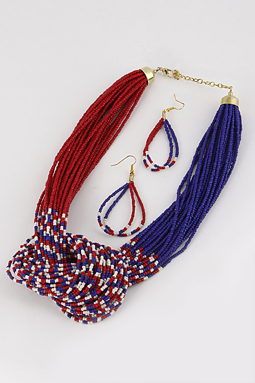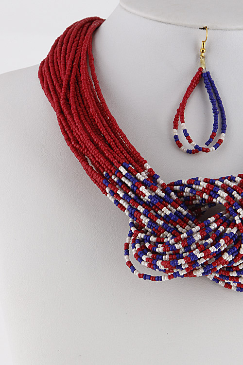 - * America Inspired Thick Beaded Necklace Set 6CBI4 * 16" approx.