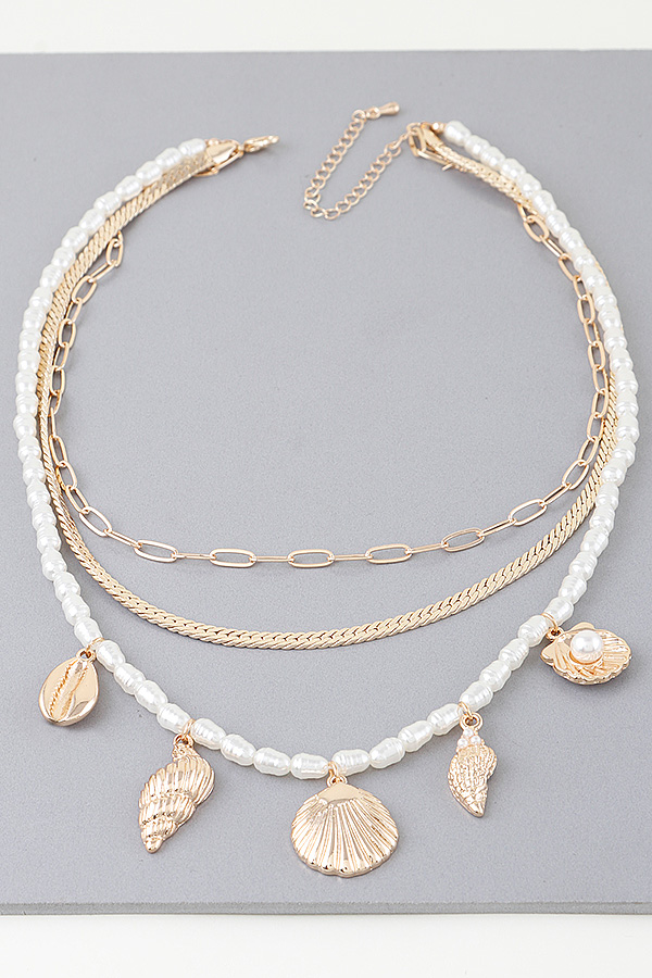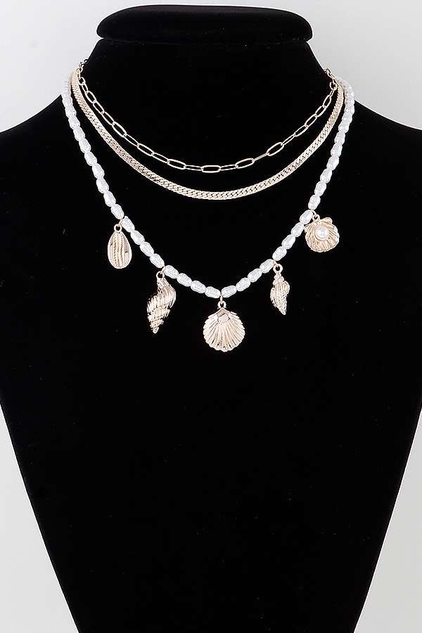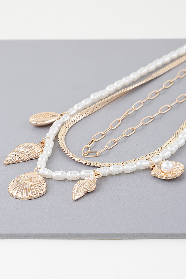 - * Introducing the "Pearl & Gold Harmony Necklace" – a stunning blend of elegance and charm. This exquisite piece features a luxurious gold chain adorned with a beautiful pearl necklace, complemented by delightful seashell charms. Elevate your style and make a statement with this unique accessory that captures the essence of coastal beauty.