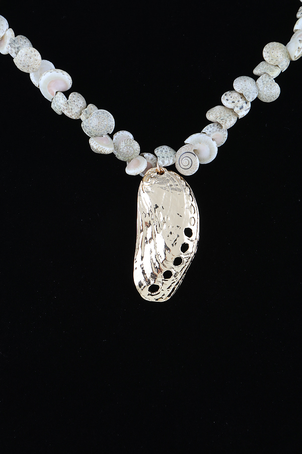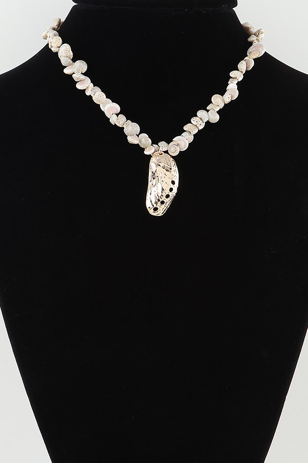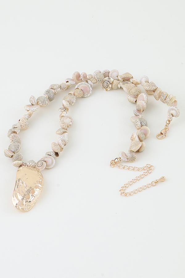 • * The Hammered Sea Shell Beaded Necklace from H&D Accessories is an elegant piece of jewelry. The pendant is the focal point, showcasing a textured, hammered design that adds a touch of sophistication. This necklace is perfect for beach vacations, summer parties, or any casual occasion where you want to add a nautical charm to your outfit.