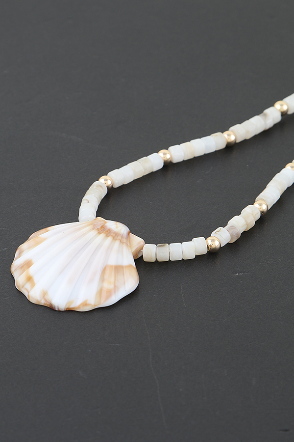 • * The Clam Shell Beaded Necklace from H&D Accessories is a charming piece of jewelry. It features a large, elegant clam shell pendant attached to a beaded chain. The beads are neatly strung together, creating a stylish and cohesive look. This necklace is perfect for beach outings, summer parties, or any casual occasion where you want to add a touch of coastal elegance to your outfit. The gold - toned clasp ensures secure wearing, making it both fashionable and functional.