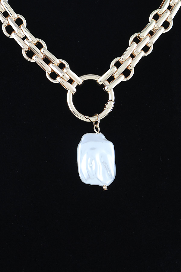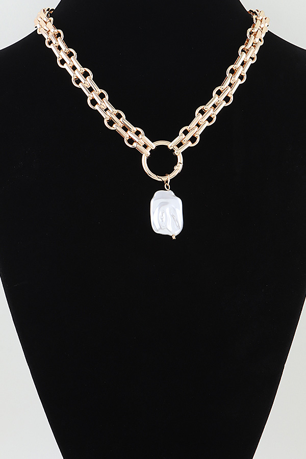 - * This Polished Long Drop Hoop Necklace from H&D Accessories features a sturdy interlocking chain, centered with a circular hoop that suspends an organic-shaped pendant, creating a balanced mix of bold and delicate design. It pairs beautifully with a sleek camisole for a chic lunch date or adds a sophisticated focal point to an evening cocktail dress, making it a versatile statement piece for any occasion.