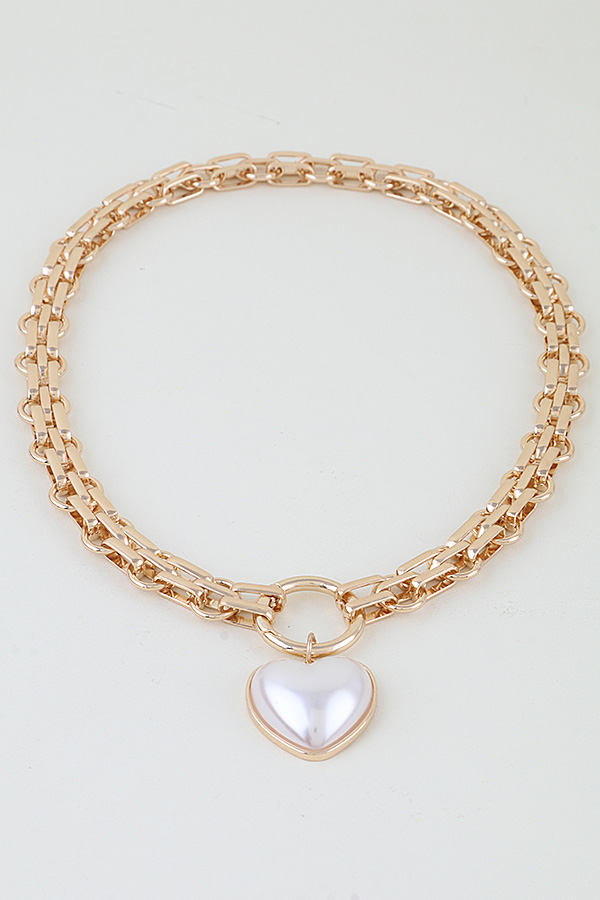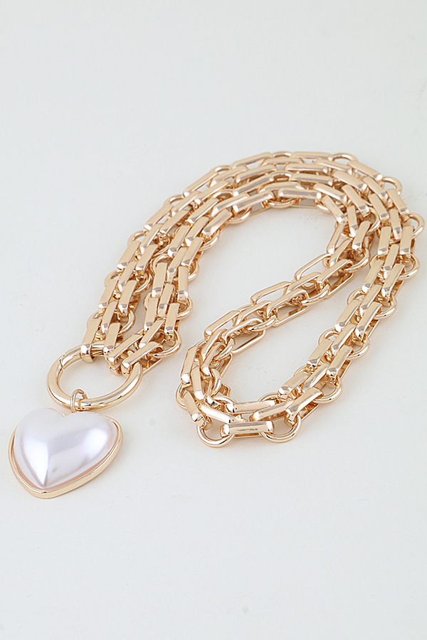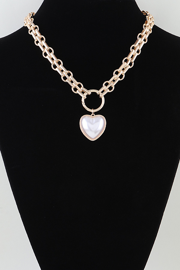 • * This Pearl Heart Pendant Toggle Chain Necklace from H&D Accessories features a chunky, metallic chain with a toggle-style clasp, anchored by a prominent heart-shaped pendant with a lustrous focal bead at its center. Its bold, romantic design adds a playful, glamorous touch to any ensemble. Wear it to elevate a simple blouse for a daytime brunch or to complement a sleek dress at a cocktail party. The sturdy chain ensures lasting wear, making it a striking choice for both casual and special occasions.