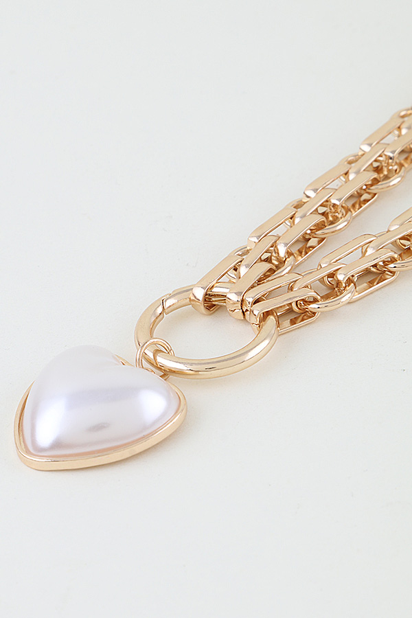 • * Pearl Heart Pendant Toggle Chain Necklace